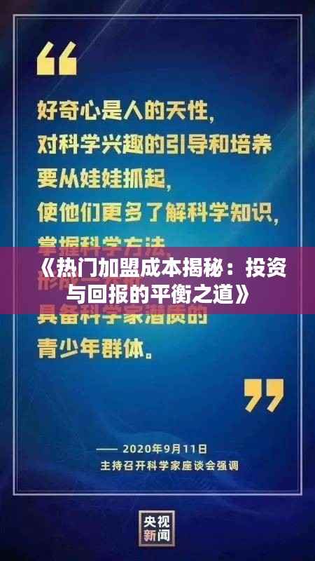 标题:《热门加盟成本揭秘:投资与回报的平衡之道》