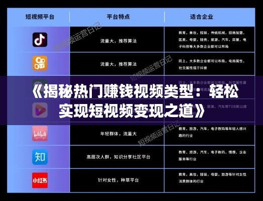 标题:《揭秘热门赚钱视频类型:轻松实现短视频变现之道》