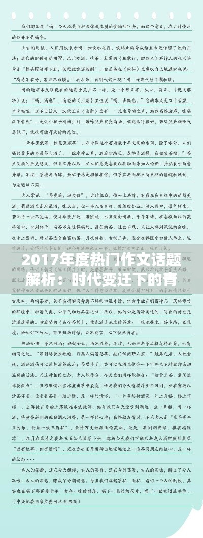 标题:2017年度热门作文话题解析:时代变迁下的青春感悟