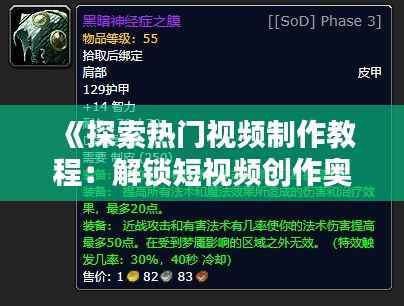 标题:《探索热门视频制作教程:解锁短视频创作奥秘》