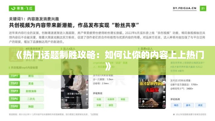 标题:《热门话题制胜攻略:如何让你的内容上上热门》