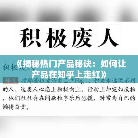 标题:《揭秘热门产品秘诀:如何让产品在知乎上走红》