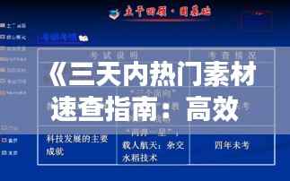 标题:《三天内热门素材速查指南:高效捕捉热点信息》