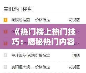 标题:《热门榜上热门技巧:揭秘热门内容创作秘诀》