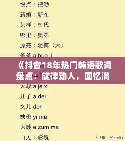 标题:《抖音18年热门韩语歌词盘点:旋律动人,回忆满满》