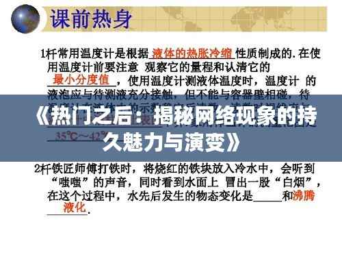 标题:《热门之后:揭秘网络现象的持久魅力与演变》