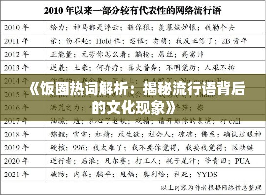 标题:《饭圈热词解析:揭秘流行语背后的文化现象》