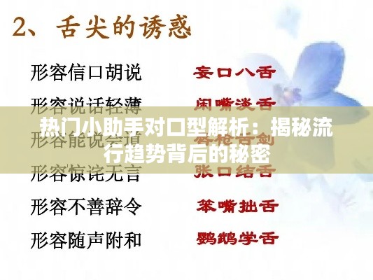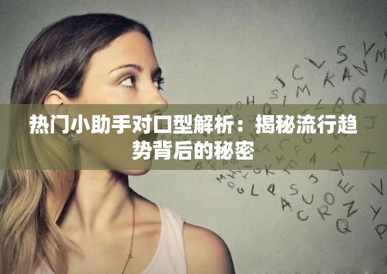 标题:热门小助手对口型解析:揭秘流行趋势背后的秘密