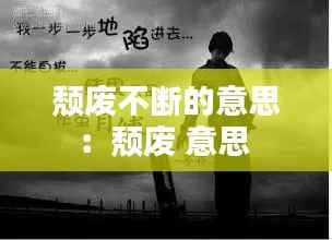 颓废不断的意思,通常指的是一种持续存在的消极、懒惰或失去活力的状态。这种状态可能源于个人的心理、生理或环境因素,表现为对日常生活的消极态度,缺乏动力和热情,以及对未来缺乏期望和规划。