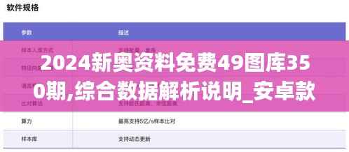 "2024新奥资料免费49图库350期,综合数据解析说明_安卓款9.152"是一个强大的政策传播工具,它通过集中展示、深度解析以及用户友好的交互设计,为澳门政策文件的发布和理解提供了新的解决方案。"新奥资料"安卓款9.152版本以其多语言支持、数据安全保护以及对透明度的追求,成为了促进澳门社会治理和政策实施的有效工具。通过这篇文章,我们希望读者能够更深入地了解"新奥资料",并对其带来的可能性产生兴趣。