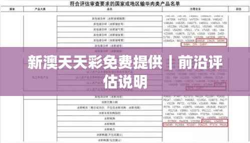 随着澳门经济的发展,与国际接轨的需求日益增强,我中心秉持服务澳门经济、促进区域合作的宗旨,特推出“新澳天天彩免费提供——前沿评估说明”,为澳门广大市民和中小企业提供全方位的支持。通过这份文件,我们旨在介绍我们的服务内容、目标和方法,并清楚地阐述如何在澳门地区推广和应用相关的评估政策和工具。