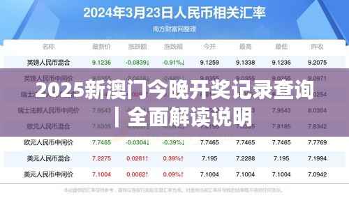 2025新澳门今晚开奖记录查询 全面解读说明