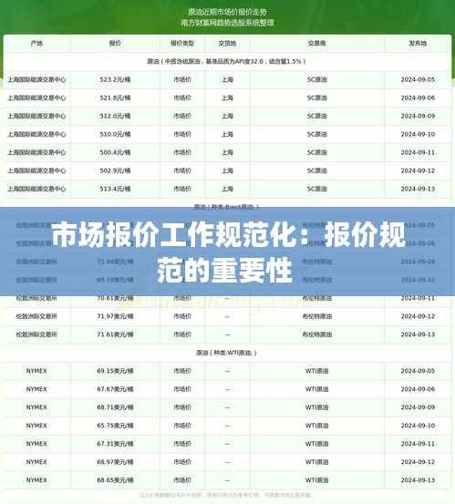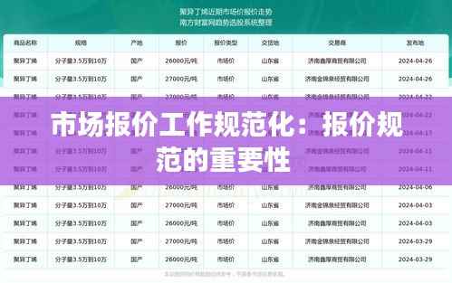市场报价工作规范化是企业提升运营效率、增强市场竞争力的关键环节。企业应高度重视市场报价工作的规范化,通过不断完善和优化报价体系,为企业发展奠定坚实基础。
