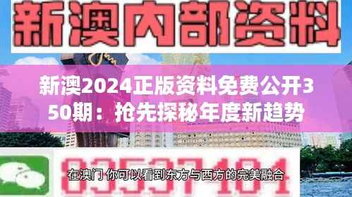 <-h2>新澳2024正版资料免费公开350期概述“新澳2024正版资料免费公开350期”是一个蕴含着丰富信息的平台,提供了一系列免费、权威的政策资料,以及对年度新趋势的独家分析。这个项目不仅为广大民众提供了一个获取澳门最新政策信息的渠道,更是对政策研究者和学者们的一个宝贵的资源库。通过这个项目,我们能够增强公众对澳门政策的认知,促进社会各界对社会发展动态的更好理解。