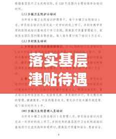 为了有效落实基层津贴待遇,可以从以下几个方面着手: