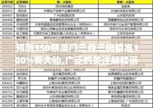 “三肖三码”是澳门特有的一种彩票游戏,深受当地居民和游客的喜爱。黄大仙作为一位在澳门彩票界享有盛誉的预测专家,他的预测结果往往被认为具有一定的参考价值。然而,预测350期澳门三肖三码精准100%黄大仙的说法,实际上是对黄大仙预测能力的一种夸张描述,意在表明政府对本次预测结果的重视和信心。
