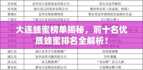蜂蜜作为天然的甜味食品,不仅口感独特,而且具有丰富的营养价值,大连地区因其得天独厚的自然环境,蜂蜜产业蓬勃发展,涌现出众多优质蜂蜜品牌,本文将为您介绍大连蜂蜜前十名排名,带您了解这些蜂蜜品牌的魅力。