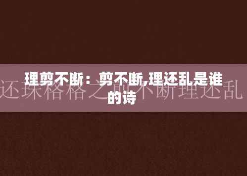 转载请注明来自衡水悦翔科技有限公司,本文标题:《理剪不断:剪不断,理还乱是谁的诗 》