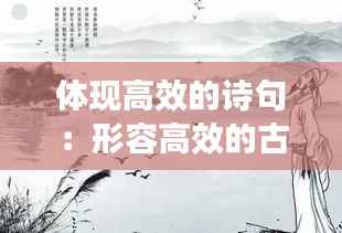 转载请注明来自衡水悦翔科技有限公司,本文标题:《体现高效的诗句:形容高效的古语 》