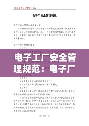 电子工厂安全管理规范是保障员工生命安全和企业财产安全的重要措施。通过建立健全的安全管理组织机构、安全管理制度、安全检查与隐患排查、安全教育培训和应急管理,可以有效降低安全事故的发生,为电子产业的发展创造良好的安全环境。