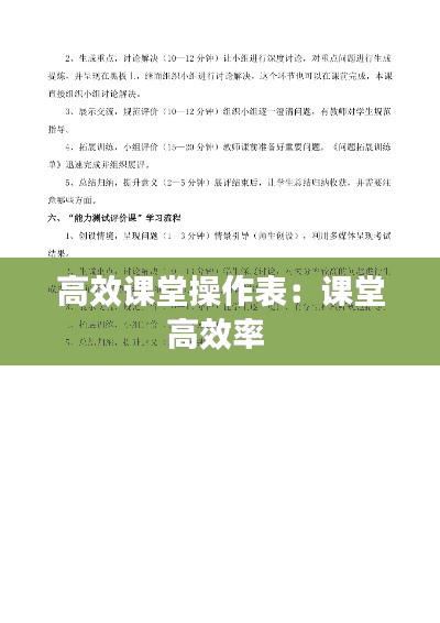 高效课堂操作表是教师提高教学效果的重要工具。通过遵循以上步骤,教师可以更好地组织课堂,激发学生的学习兴趣,提高教学质量。同时,学生也能在轻松愉快的氛围中学习,获得更好的学习体验。