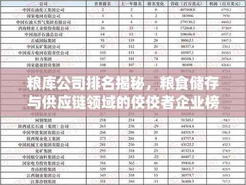 随着农业产业的不断发展,粮食储存与供应链的重要性日益凸显,粮库公司作为这一领域的重要一环,其排名自然备受关注,本文将带你了解粮库公司的排名及其背后的故事。